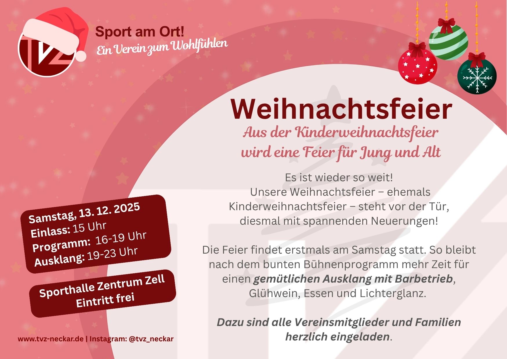 Seit Jahrzehnten bietet der TVZ die Möglichkeit Sport und Gemeinschaft direkt miteinander zu verknüpfen. So treffen sich die Teilnehmer der freitagabends stattfinden Sportangebote (Prellball, Volleyball) nach dem Ballwechsel zum gemütlichen Wochenausklang bei mitgebrachtem Vesper und erfrischenden Getränken (im Vereinsraum vorhanden, gegen Unkostenbeitrag). Dieses Angebot wird nun vom Insiderangebot zum gemütlichen Get Together für alle Mitglieder geöffnet. Wir freuen uns auf euch!